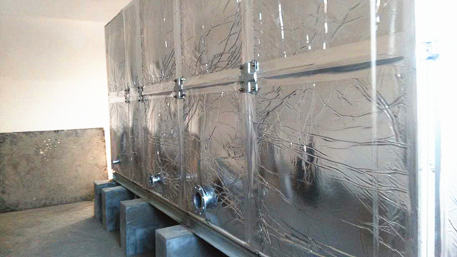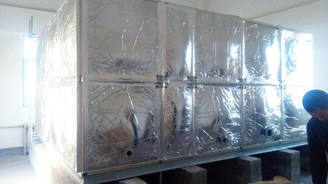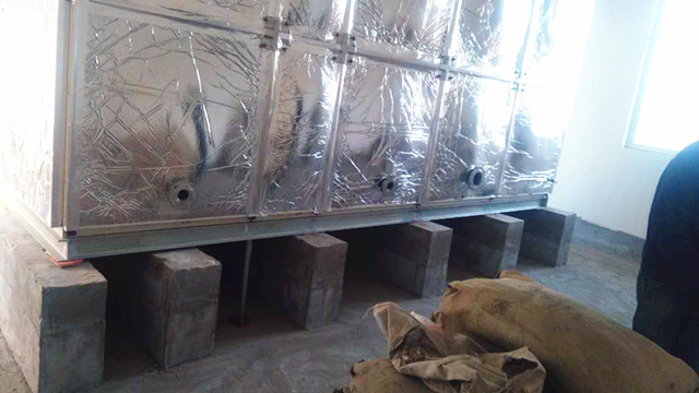 此水箱外圍為鋁箔布橡塑保溫,客戶在找到我們時根本不了解水箱保溫情況,只告訴我們水箱是在學校用,供學校學生用水。水溫要保存好才行。經(jīng)過我們的了解,我公司向客戶提供使用玻璃鋼材質(zhì),外加橡塑保溫。水箱材質(zhì)用水既安全、衛(wèi)生又耐用,用個十多年沒問題,而且橡塑保溫價格便宜,水溫在24小時之內(nèi)能保持10-30度左右是沒有問題的