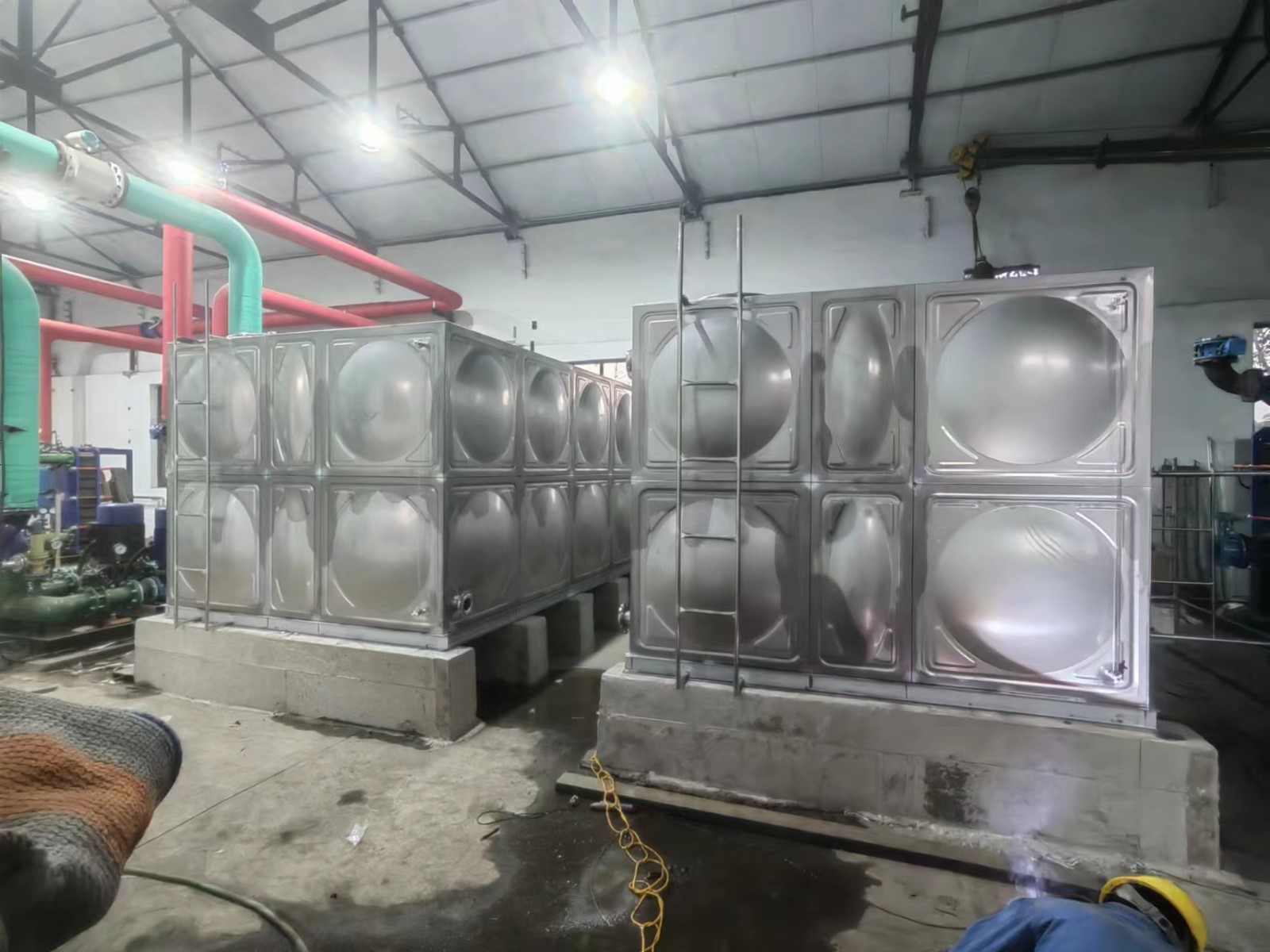 我廠承接的河北省唐山市開灤林西礦業(yè)回臺換熱站2臺304不銹鋼焊接水箱已經安裝試水完成。不銹鋼水箱具有重量輕、不銹蝕、不滲漏、性不銹鋼水箱、水質好、使用范圍廣、使用壽命長、外形美觀、安裝方便、清洗維修簡便、適應性強等特點。并且任意組合,造型,容積可滿足任何設計要求。