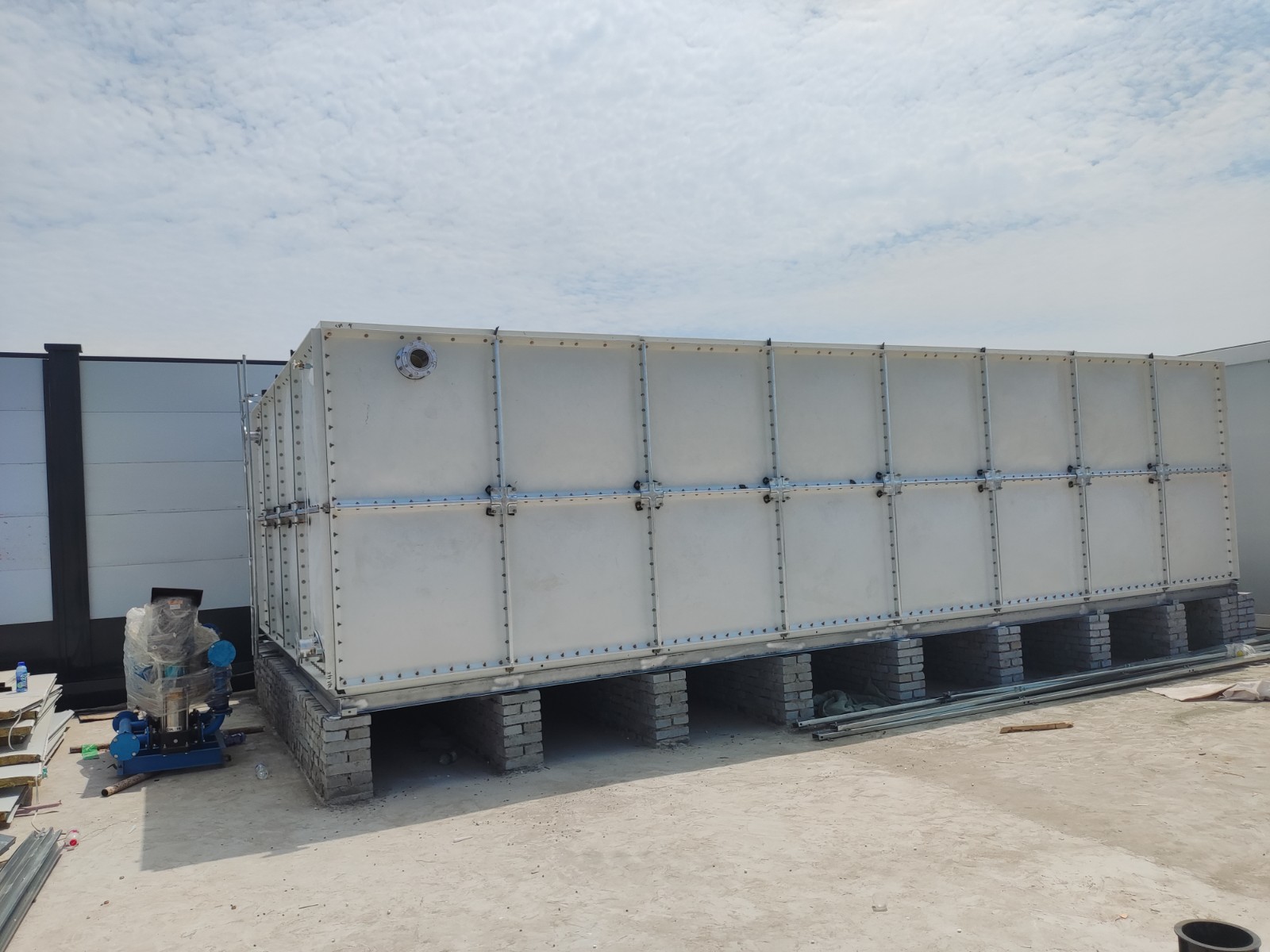 我司承接的山東省濟(jì)寧市濟(jì)南城建項(xiàng)目,玻璃鋼消防水箱已經(jīng)安裝完成。玻璃鋼保溫水箱是由SMC模壓板塊、密封材料、金屬結(jié)構(gòu)件及配管系統(tǒng)現(xiàn)場(chǎng)組裝而成。可根據(jù)用戶需要靈活組裝,若原有水箱需要更換,不需要改造房屋,適應(yīng)性很強(qiáng)。水箱整體強(qiáng)度高,無滲漏,無變行,保養(yǎng),檢修方便。